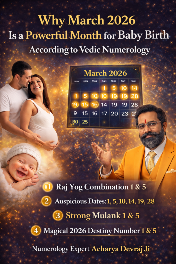 Discover the best auspicious and lucky dates for child birth in March 2026 with powerful Raj Yog as per Vedic Numerology. Learn Mulank, Destiny Number, and cesarean Muhurat guidance by numerology expert Acharya Devraj Ji for a healthy, successful baby.